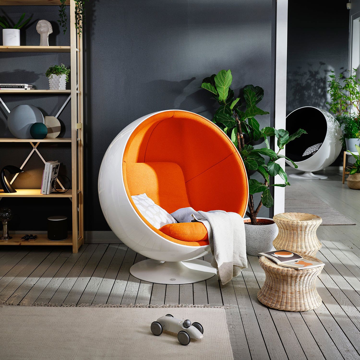 De Ball Chair – ook wel de Globe Chair genoemd – is een ontwerp van Eero Aarnio uit 1963. Aarnio liet zich inspireren door één van de eenvoudigste geometrische vormen: de bal. Door er een snede in te maken kwam hij tot een opmerkelijke en onconventionele stoel, één van de iconen van 20ste eeuwse kunststoffen designmeubilair.